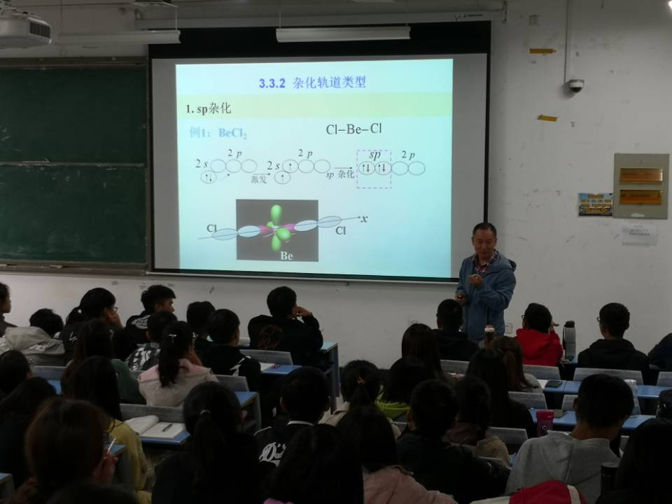 本次观摩课由胡平副教授授课,讲授内容为“无机化学”中的杂化轨道理论。胡老师在整个课堂教学的组织中松弛有度、收放自如。教学步骤设计合理,由浅入深,循序渐进。设计的问题合理科学,针对性强,阐述简练准确,重点突出,解决了核心问题。能注重学法指导,培养学生的创新能力,并不断鼓励学生,充分发挥学生的主体作用,使学生在和谐融洽的课堂氛围中学习,推进了知识的掌握和智力的发展,达到了良好的教学效果。