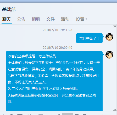 安全生产,责任重大,全体师生忙碌了一个学期,ok138cn太阳集团529党总支高度重视教学的最后一个环节——改卷期间的安全与稳定工作。总支利用会议、网络、电话沟通、当面提醒等多种方式教育教工,认真对待期末改卷工作,不得有麻痹思想和侥幸心理。要保证改卷公平、录分细心、核查认真、试卷保密等细节工作,特别要求三校区各流水改卷地点注意锁好门窗,不得让无关人员进入等。