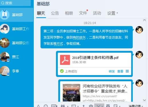 2.全员参与招博工作,一是每人将学校的招聘材料发至同学群中(要求截屏),做到有的放矢,二是利用春节走访亲友、同学联系等方式,争取招博。