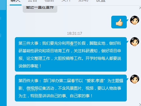 第二步,针对假期四件大事:廉洁过节、全员招博、努力科研、孝道摄影,发布部门具体要求: