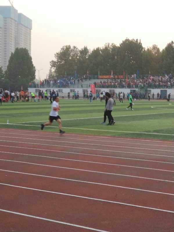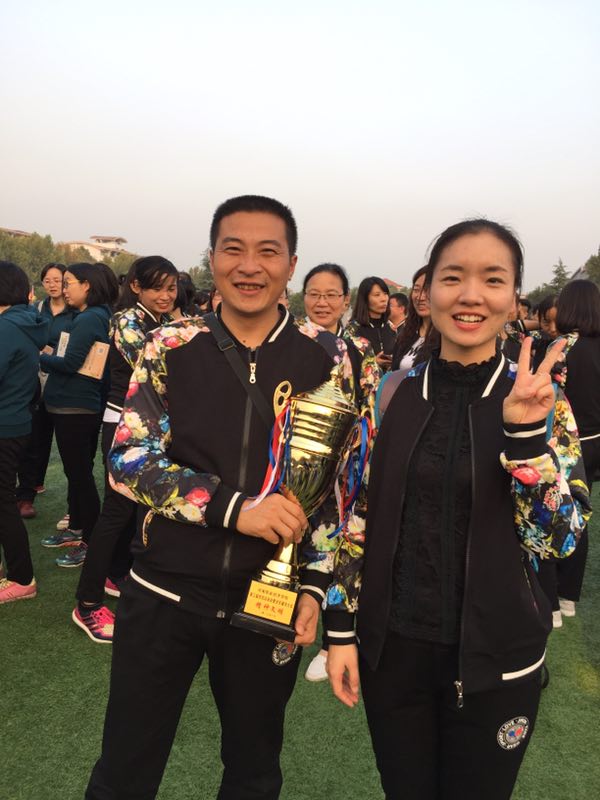 在教工比赛项目中,取得可喜成绩:徐军老师在男子800米和男子1500喜获第1名、陈晓培老师获女子100米第1名、吴金松老师获男子100米第5名。