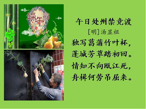 在课堂上,充分利用课前3分钟和第一张ppt宣传关于“端午”、“七一”节日内涵和意义,通过经典诗篇赏读,经典红歌赏析和共唱经典红歌等形式引导学生,师生共同迎接中华传统节日“端午”和庆祝“七一”党的生日。