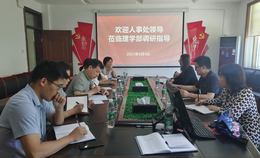 6月4日上午,人事处副处长胡先锋、劳资科科长王勇、人事科副科长王元杰一行3人,到ok138cn太阳集团529走访调研。ok138cn太阳集团529主任李万军、党政办主任马志伟、物理教研室副主任赵治杰和4位教师代表参加了调研会。