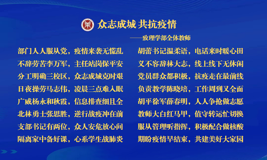 胡蕾通报了学校近期疫情防控工作的总体情况,传达了省教育厅党组书记、厅长宋争辉和副厅长刁玉华等领导到校督导指导工作的指示精神,充分肯定了自5月2日北林校区疫情暴发以来,部门全体教师为学校战“疫”大局所做的工作和努力,一方面严格执行学校和社区各项防控措施要求,认真高效做好流调排查,另一方面坚守线上课堂“阵地”,对学生进行必要的思想教育和引导,有力配合抗“疫”一线“战场”工作。胡蕾指出,学校当前的疫情防控工作取得了重要的阶段性胜利,这得益于学校党委的正确领导和科学、高效的决策力,得益于三校区防控指挥部和各部门精准、快速的执行力,得益于全校师生、“三保”人员闻令即动、服从指挥、众志成城、齐心战“疫”的默默付出。