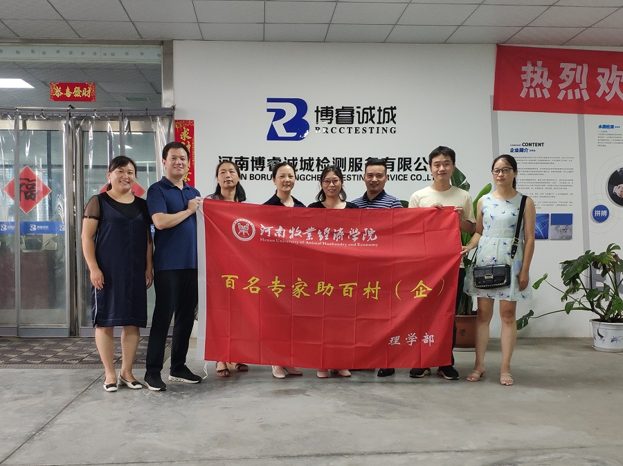 为推进我校“百名专家助百村(企)”工程实施,深化产教融合和校企合作,7月27日上午,ok138cn太阳集团529党总支书记胡蕾、副主任张荷丽和化学教研室主任耿广威带领化学教研室3名青年博士,前往高新区河南海瑞正检测技术有限公司、河南博睿诚城检测服务有限公司开展“双百”服务,助力企业发展。