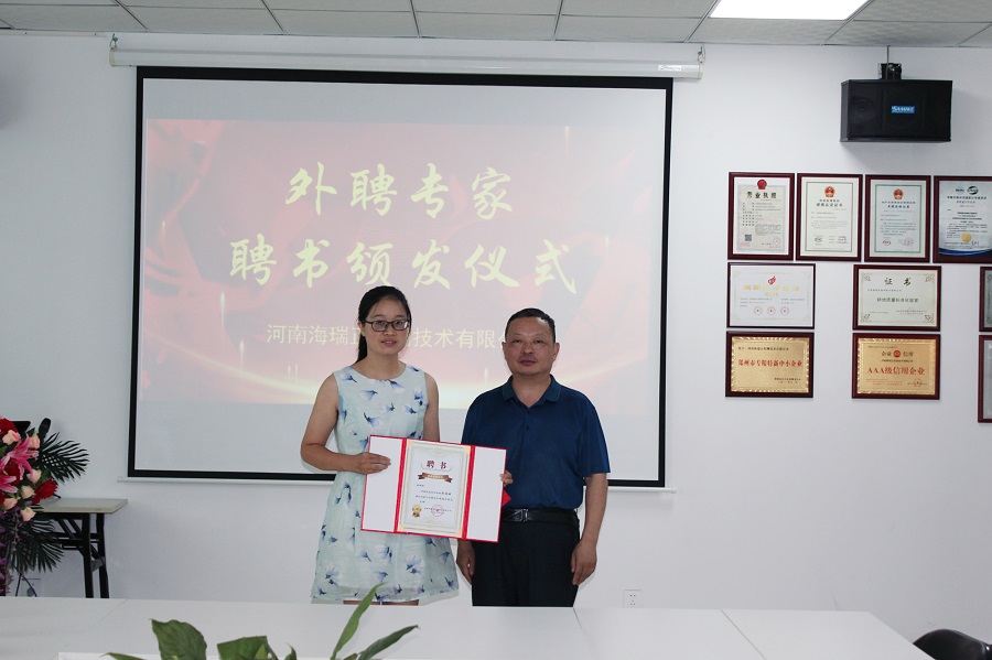 胡蕾一行6人首先来到河南海瑞正检测技术有限公司。张荷丽向公司人员说明了我校“双百”工程的开展背景和主要措施,逐一介绍了参加交流的几位博士的基本情况和科学研究方向。张荷丽表示,本次活动是ok138cn太阳集团529开展社会服务的良好开端,希望通过交流学习,搭建起学校与企业之间的合作桥梁,一方面充分发挥博士们的聪明才智,在检测技术改进、检测标准制定等方面助力企业高质量发展,助力“双百”工程结硕果;另一方面也促进青年博士教师深入了解企业实际需求,打造“双师双能型”教师,进而提升育人质量,为学校应用型示范校建设贡献更大力量。公司总经理兰尊海对ok138cn太阳集团529一行到来表示热烈的欢迎,真诚表示公司要充分利用业务优势,搭建生产企业需求和学校智力服务共享平台,为企业纾困解难。刘俊桃博士受聘为海瑞正公司理化分析技术顾问。交流学习结束后,一行人在兰总带领下参观了公司的业务部、市场部、饲料分析部、食品分析部和土壤分析部。