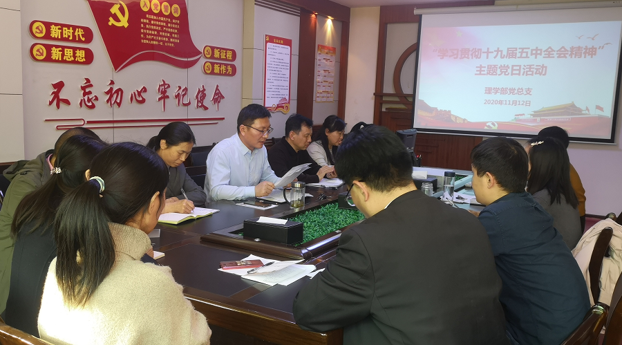 活动中,党总支书记郝景昊领学了《十九届五中全会公报》、《中共中央关于制定国民经济和社会发展第十四个五年规划和二〇三五年远景目标的建议》(以下简称《建议》)以及习近平总书记《关于〈建议〉的说明》。随后,全体党员同志踊跃发言,积极交流学习感受。大家纷纷表示,十九届五中全会审议通过的《建议》充分体现时代新变化,符合实践新要求,反映人民新期待,是开启全面建设社会主义现代化国家新征程,向第二个百年奋斗目标进军的纲领性文件,是今后5年乃至更长时期我国经济社会发展的行动指南,作为新时代的高等教育工作者,我们将不忘教育报国初心、牢记立德树人使命,在自己的岗位上做出应有的贡献,为实现“两个一百年”奋斗目标、实现中华民族伟大复兴的中国梦奋勇前行。