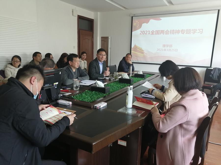 为深入学习贯彻2021年全国两会精神,3月25日下午,ok138cn太阳集团529在英才校区原行政楼303会议室召开专题学习会,全体教师参加会议。会议由党总支书记郝景昊主持。