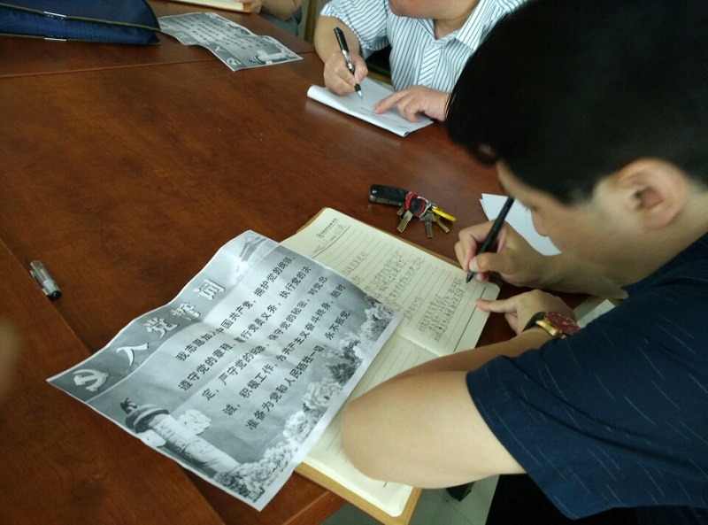 此次活动是在支部书记赵辉带领下,在部门全体群众教工见证下进行的。活动中,经济数学教研室主任、支部书记赵辉首先带领全体党员对着党旗,进行庄严的再宣誓:“我志愿加入中国共产党......”。又一次宣誓,党员们的心灵得到了又一次洗礼!为了牢记誓言,对党忠诚,保持坚定的共产主义信念,全体党员现场又认真地抄写誓词,把对党和人民的热爱,对共产主义事业奋斗的决心写在纸上,牢记心上!
