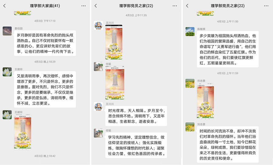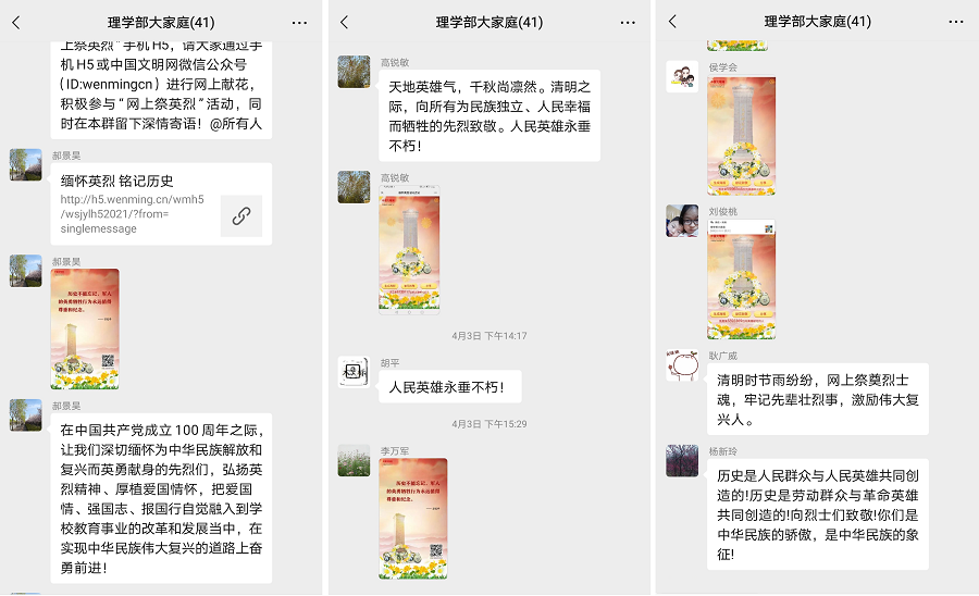 活动中,老师们在网上缅怀英雄伟绩,祭奠烈士英魂,书写感言寄语。大家纷纷表示,要弘扬英烈精神、厚植爱国情怀,把爱国情、强国志、报国行自觉融入到学校教育事业的改革和发展当中,在实现中华民族伟大复兴的道路上奋勇前进!