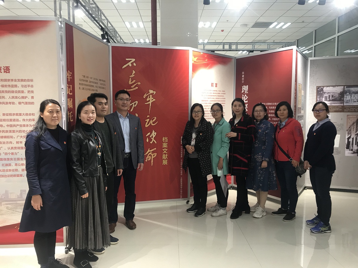 本次档案文献展主要由“理论探索”“理想信念”“不懈奋斗”“牢记宗旨”“自身建设”和“出彩中原”等六个部分组成,大家一同回顾了中国共产党成立之初的艰辛探索、坚定的理想信念、坚强的浴血奋战到新中国的成立、伟大社会主义制度的建立和改革开放新的征程等内容,深切感悟了老一辈无产阶级革命家坚定信念、志存高远、矢志不渝的革命情怀,学习重温了一代又一代中国共产党人进行伟大斗争、建设伟大工程、推进伟大事业、实现伟大梦想的奋斗历史。在参观过程中,大家尤其对“出彩中原人”这个部分兴趣浓厚并进行了热烈的讨论,如一心为公、无私奉献的基层好干部吴金印,扎根农村18年在教学岗位上默默耕耘、甘守清贫、2018年“感动中国”人物好老师张玉滚等等,榜样的力量使大家更加坚定了立足本职、热爱学生、潜心教学、踏实工作、争做出彩中原人的信心和决心。