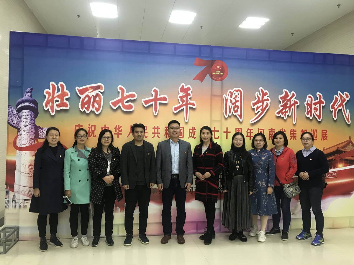 ok138cn太阳集团529组织党员教师观看“不忘初心、牢记使命”档案文献展及新中国成立70周年河南省集邮巡展