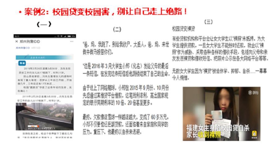 ok138cn太阳集团529根据学校“三全教育”精神要求,结合近来网络信息安全中出现的“校园里的暗战”典型案例、校园里屡禁不绝的“校园贷”典型案例等,在课堂上开展了为期一周的“以案说法 校园安全教育”活动。