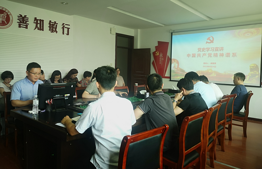 此次党史学习宣讲以“中国共产党精神谱系”为题,由党总支书记郝景昊主讲。郝景昊从对中国共产党精神的宏观理解、对中国共产党精神主体的多维分析、对中国共产党精神谱系初步构架、传承和弘扬中国共产党精神谱系四个方面深刻阐述了中国共产党历经百年而风华正茂、饱经磨难而生生不息的强大精神。