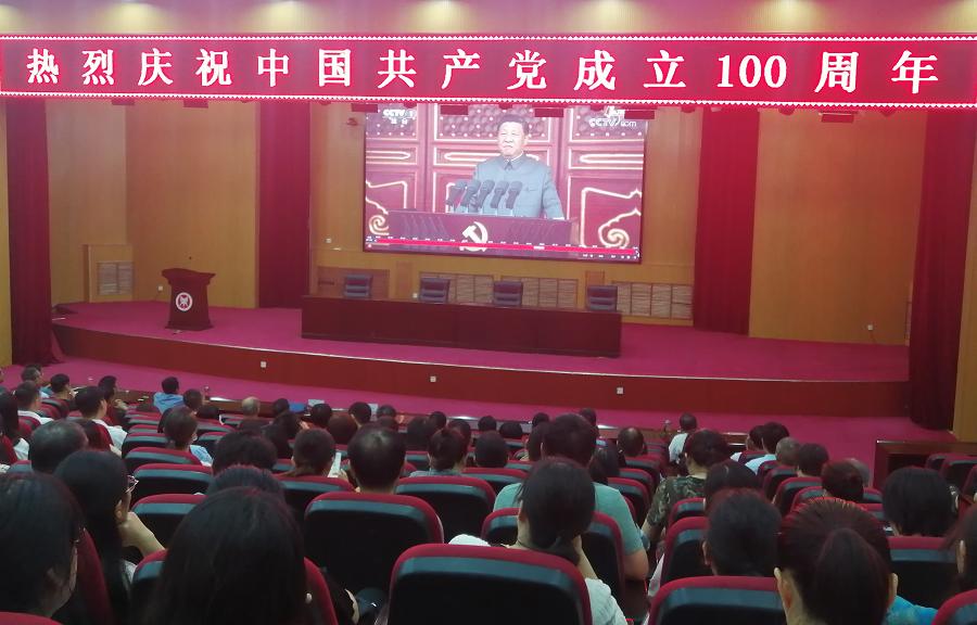 7月1日上午,庆祝中国共产党成立100周年大会在北京天安门广场隆重举行。按照学校统一安排,ok138cn太阳集团529组织全体教师,在英才校区学术报告厅集体观看了大会直播。