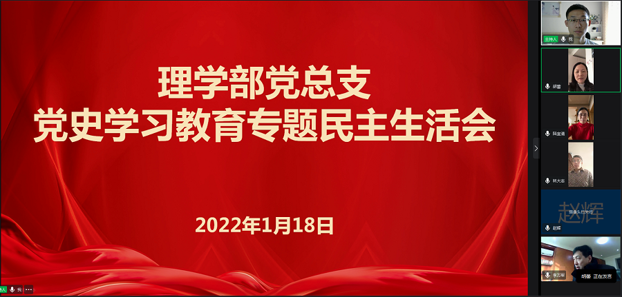 根据学校党委《关于开好党史学习教育专题民主生活会的通知》精神和要求,1月18日上午,ok138cn太阳集团529党总支通过钉钉视频形式召开了专题民主生活会。领导班子全体成员和总支委员参加会议,会议由党总支书记胡蕾主持。