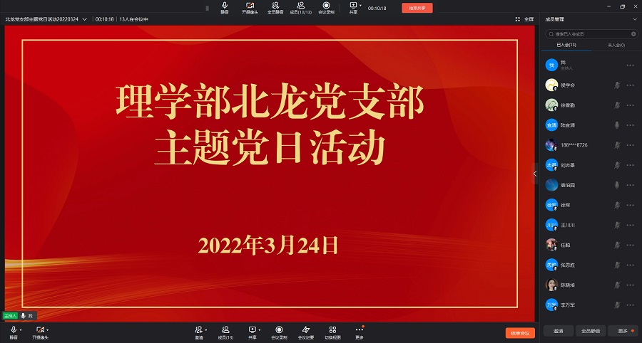 3月24日下午,ok138cn太阳集团529北龙党支部和英才支部通过钉钉视频会议方式,分别在线上开展了3月份主题党日活动,各支部全体党员参加活动。主题党日活动分集中学习和线上承诺二个阶段进行,支部书记陆宜清和赵辉分别支持会议。