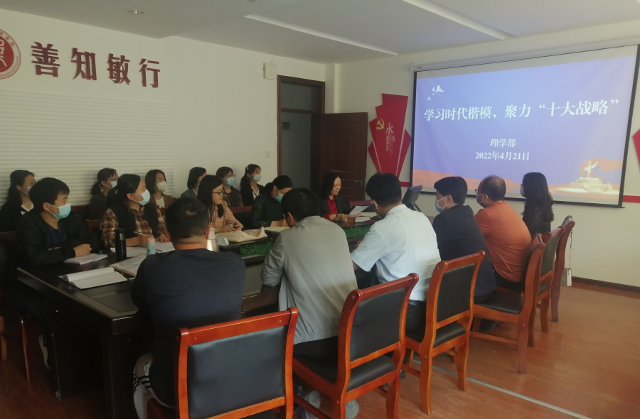 为做好全体党员“十大战略”教育培训工作,按照校党委《关于组织党员进党校学习“十大战略”的通知》(校党〔2022〕22号)要求,结合“能力作风建设年”活动,4月21日下午,ok138cn太阳集团529召开了“学习时代楷模,聚力‘十大战略’”专题学习会议,全体党员参加学习。会议由党总支书记胡蕾主持。