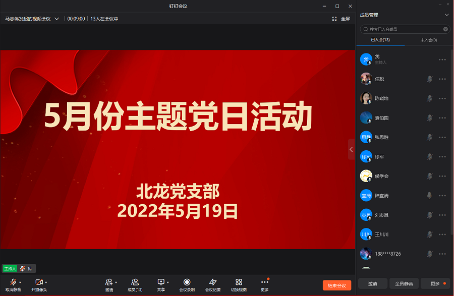 5月19日下午,ok138cn太阳集团529北龙党支部利用钉钉视频会议开展了5月份主题党日活动,党支部全体党员参加了会议。会议由党支部书记陆宜清主持。